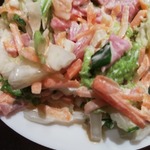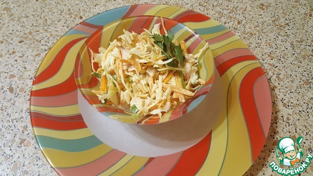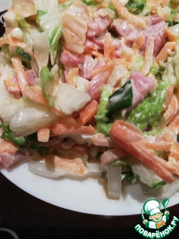[+5]Сочный, хрустящий, отличное сочетание с копчёной курицей! Извини, забыла купить лук, с ним вкус, конечно, ещё интереснее. Я добавила укроп. Ну будет повод повторить)))))