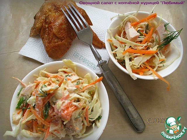 Рецепт «Овощной салат с копченой курицей "Любимый"»: