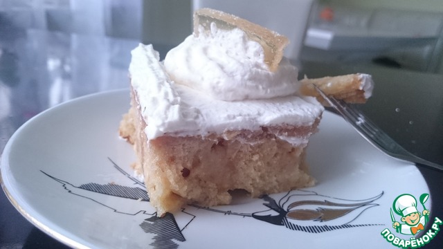 Влажный торт с апельсиновым вкусом и взбитыми сливками. Тесто похоже на кексовое, пропитанное сгущенным молоком с апельсиновым желе.