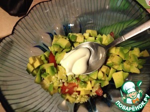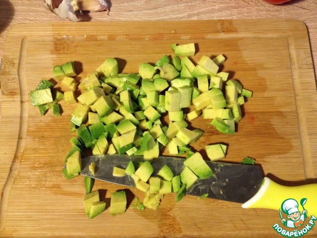 Авокадо очистить и нарезать кубиками.