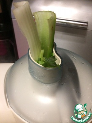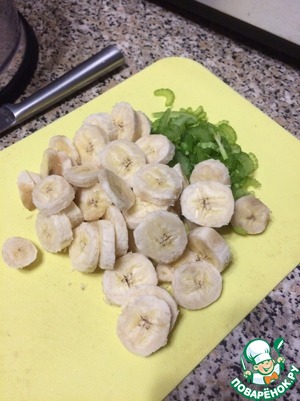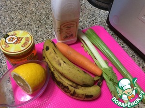 Оставшуюся половину сельдерея и бананы нарезать, положить в блендер. Добавить морковный и лимонный соки, мёд, йогурт и измельчить до однородной консистенции.