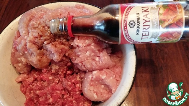 • Добавить в фарш лук, 2 кусочка замоченного в молоке белого хлеба и 1 ст. л. соуса-маринада "Терияки" от ТМ "Киккоман".