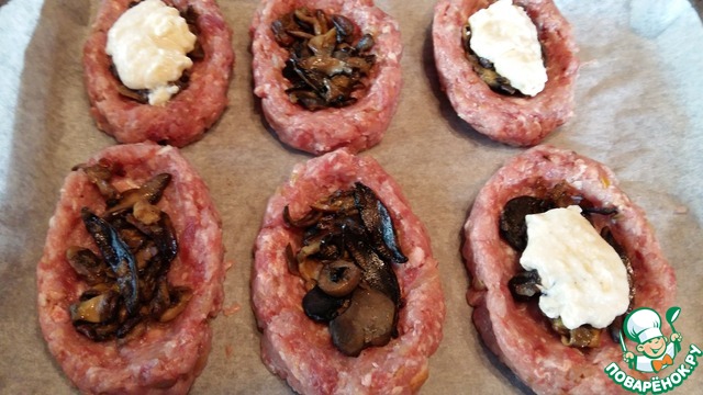 • Сформировать из фарша лодочки и выложить их на противень.