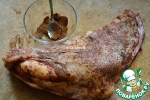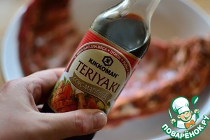 Добавить соевый соус Терияки, вмассировать в мясо;