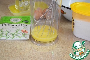 Яйца слегка взбить венчиком в мерном стакане и добавить воды до отметки 260 мл.
