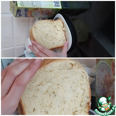 [+5]:Ароматный, лёгкий, не крошится, корочка тонкая, вкусный. Буду печь ещё. Замес теста в ХП, выпечка в духовке.