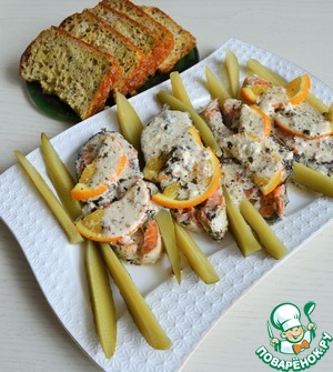 Рецепт «Нерка в сливочно-мятном соусе с апельсинами»: