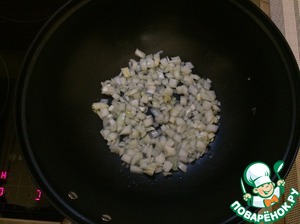 • 3. Мелко нарезанный лук пассеруем на растительном масле до золотистого цвета.