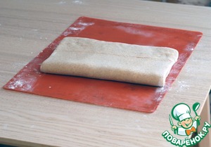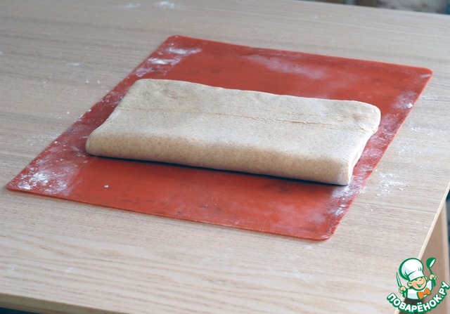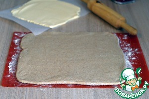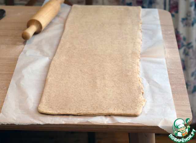Аккуратно раскатайте тесто в прямоугольник толщиной 0,5 см. Размер прямоугольника примерно 23 на 90 см.