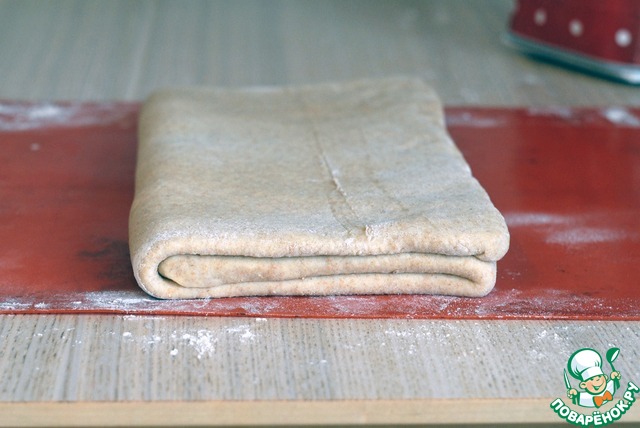 Как деловое письмо. Уберите тесто в холодильник на 2 часа. Повторите раскатку и сложение в трое еще 2 раза, каждый раз охлаждая тесто. Больше двух туров слоения делать не нужно. Последний раз охладите тесто.