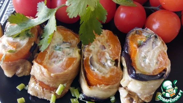 Я страстная фанатка баклажанов, много лет готовлю из них разнообразные рулетики. Подсмотрев идею у замечательного поваренка Ксении026, не смогла удержаться и приготовила вариацию на тему ее прекрасного рецепта.