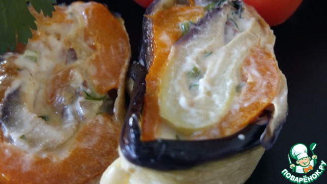 Рецепт «Рулет из запеченного баклажана с рикоттой»: