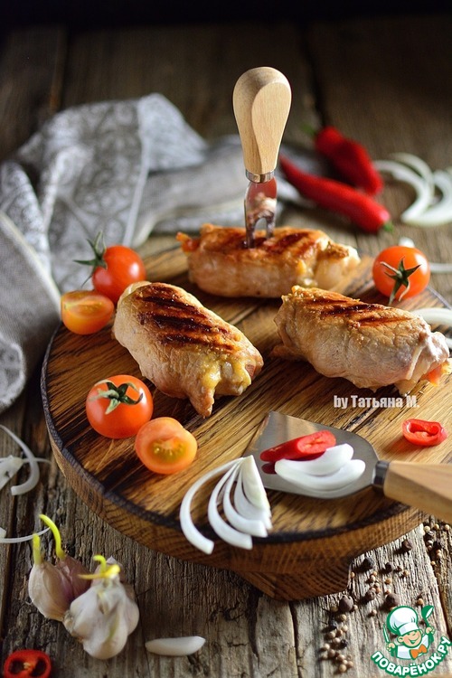 Очень вкусная закуска или горячее блюдо для пикника! Готовить не сложно, но отлично такими рулетиками разнообразить свой стол и порадовать гостей на отдыхе на природе! Сочно, очень ароматно с томатно-чесночной начинкой и легкой острецой! В охлажденном виде рулетики хорошо режутся, не рассыпаясь!