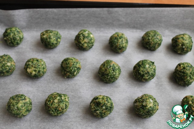 Противень выстилаем пергаментом, формируем шарики и выкладываем. Запекаем при 180 градусах 20 минут.