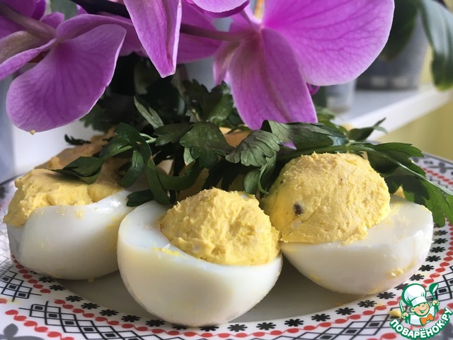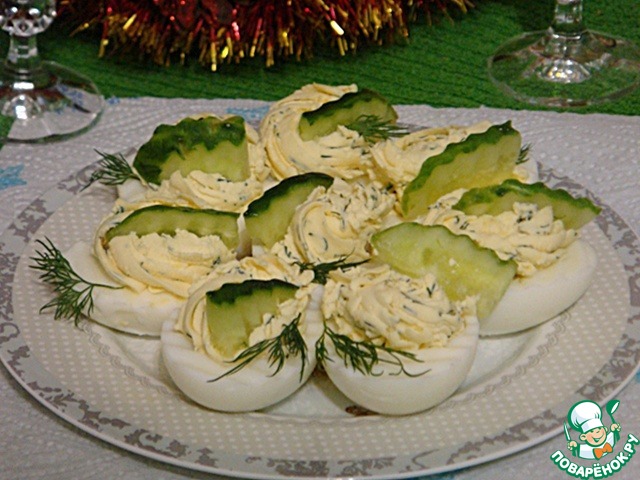 Рецепт «Яйца, фаршированные сыром и чесноком»: