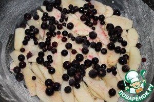 Сковороду или форму для запекания смазать маслом, присыпать мукой. Излишки стряхнуть. Выложить на дно фрукты и ягоды. Равномерно залить тестом. Поставить в духовку, разогретую до 180 градусов, на 25-30 минут.