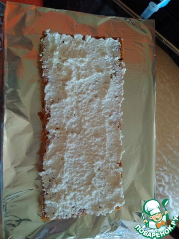 Творог и сгущённое молоко смешать (уровень сладости лучше выбирать по вкусу) и промазать коржи