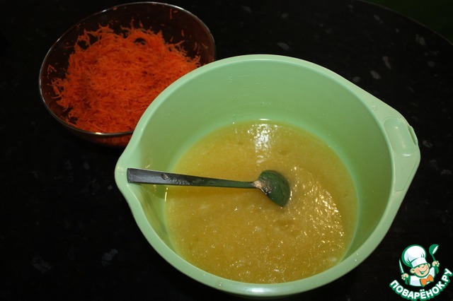 Натрите морковь на мелкой тёрке, должно получиться 3 стакана