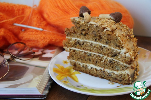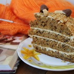 Этот рецепт нашла в интернете и немного изменила по своему вкусу. Печём совсем недавно, но уже успели его полюбить. Муж не любит морковь даже в виде поджарки в супе, а этот торт уплетает за обе щёки (про состав до сих пор не рассказываю). Морковь здесь совершенно не чувствуется. Тортик хорош с любой молочной начинкой - сгущёнка, крем-чиз, белый шоколад, взбитые сливки и подобное