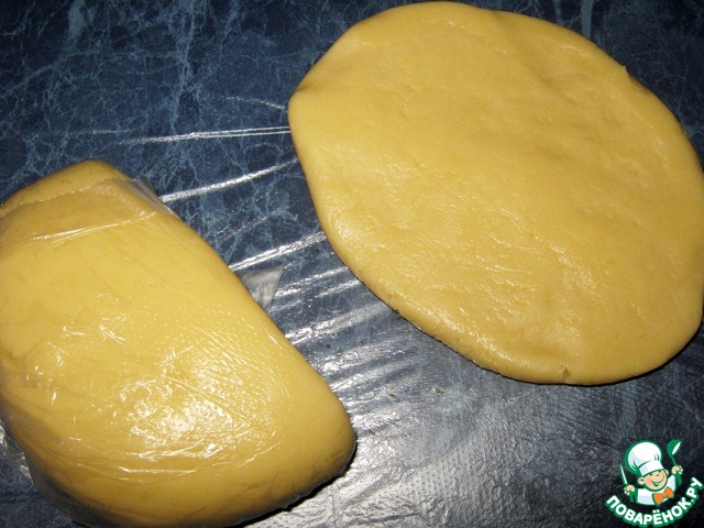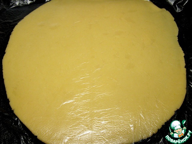 Тесто поделить на две части. Одну из них раскатать в пласт.