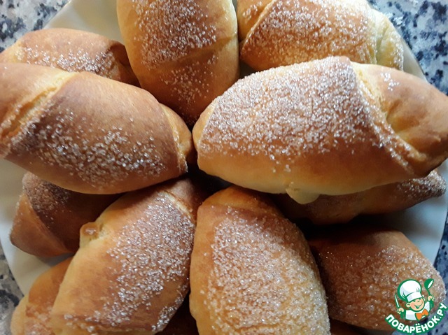 Булочки хорошо поднимаются и увеличиваются почти в 2 раза, поэтому на листе между ними надо оставлять достаточно места.