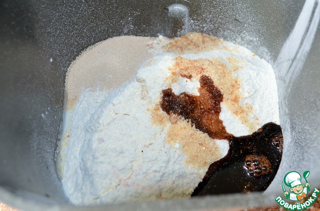 Влить соевый соус, добавить сахар, дрожжи и масло.