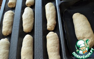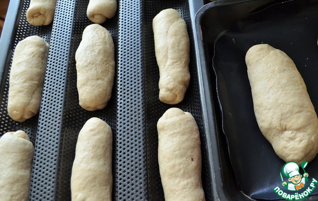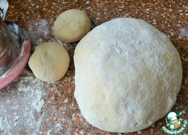 На подпыленом мукой столе обмять тесто и разделить на куски по 80 г..