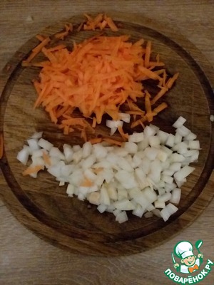 2. Лук и морковь мелко нарезаем и пассеруем на растительном масле.