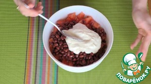 Подготовьте все необходимые по списку продукты. С фасоли обязательно слейте всю лишнюю жидкость.