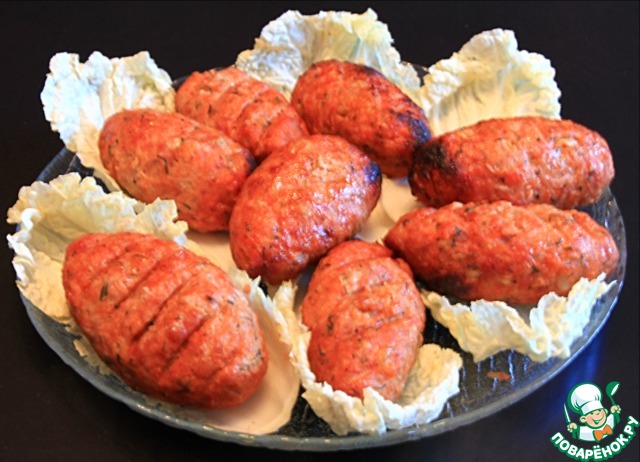 Каждый кусок вновь отбить о стол, формуя продолговатую люля. -