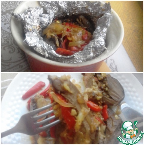 Готовила в духовке, час на 200 градусах, сердечко стало вполне мягким, за исключением верхней части, где более плотные места и начало крупных сосудов, можно было б еще минуток 10 подержать для полного идеала, в следующий раз учту. А он обязательно будет, потому что хочу еще попробовать по совету Марии springwind492 в комментариях добавить ягод можжевельника, да и вообще, рецепт зацепил - я очень люблю все такое, что загодя можно подготовить да еще и безучастно оставить потом доходить в духовке. Загорелась угостить друзей - сверточки такие интересные, сочные, пикантные, очень-очень ароматные! Я начинки положила гораздо больше, сердце в свою первоначальную форму завернуть не удалось, я просто запаковала весь этот стожок в фольгу и уложила в керамическую плошку, о том я не пожалела, но теперь понимаю, что напрасно порезала все тонко, за час готовки овощи и яблоко превратились практически в соус, лучше рубить крупными дольками.
