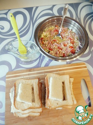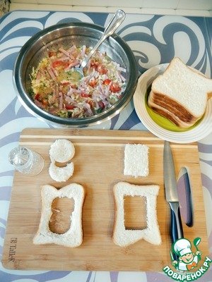 P.S. Если взять хлеб большого формата, то можно вырезать формочкам для печенья. Особенно данный вариант подойдёт детям или на праздничный стол. -