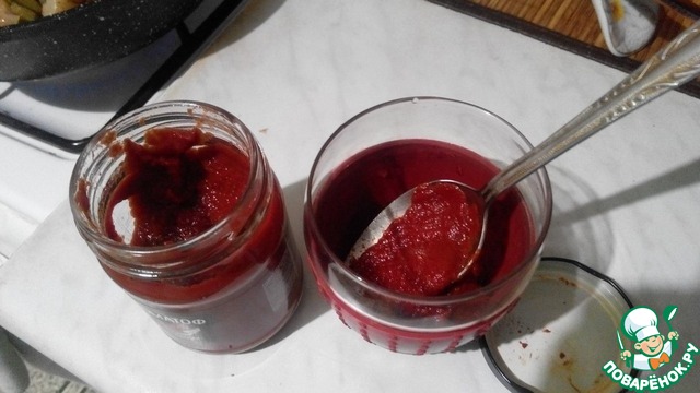 Заливаем смесью мясо, доливаем воды для того, чтобы соус полностью покрыл мясо. Добавляем лавровый лист, доводим до кипения.
