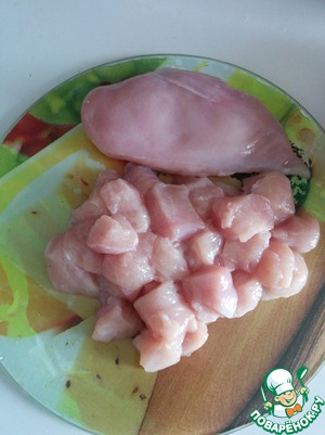 Куриное филе нарезаем кубиками.