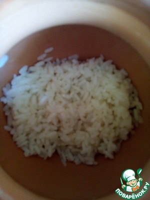 Берем горшочки в первую очередь засыпаем рис на 1/4.