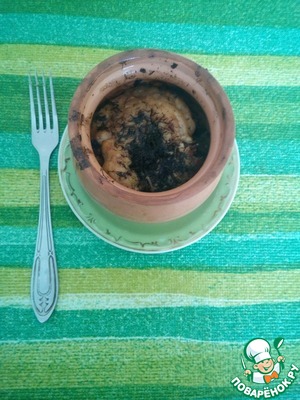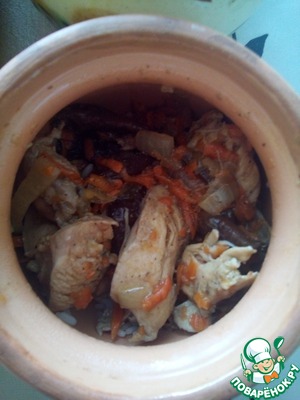 Рецепт «Курица с грибами и рисом в горшочках»: