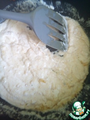 В сковородке, которой обжаривалась курица добавляем 50 г. сливочного масла и растапливаем его. К маслу добавляем муку и обжариваем до золотистого цвета.