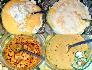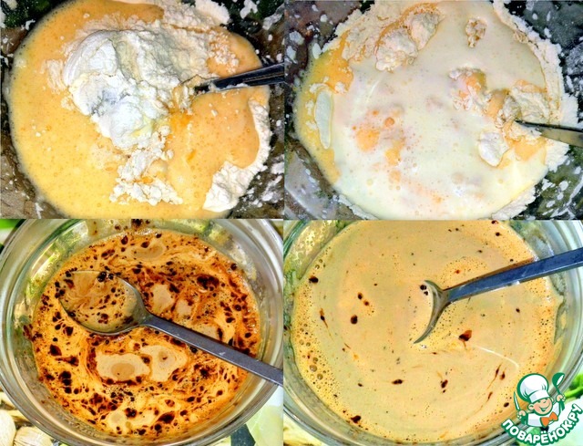 100 мл сливок, просеяла муку, насыпала разрыхлитель