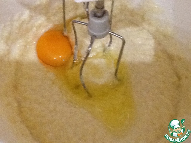 • В стаканчик (160 г) домашнего йогурта (или покупного плотной консистенции) положим 2/3 ч. л. соды, перемешаем, дождемся реакции (хотела заснять, а у меня йогурт начал убегать, пришлось срочно выкладывать) и добавим к взбивающейся массе. Дать соединиться всем ингредиентам.