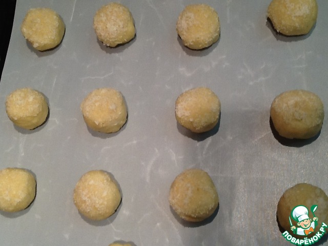 • Лепим из теста вот такие шарики. Я заморочилась, взвешивала по 25 г шарик. Это не обязательно, можно делать на глаз.