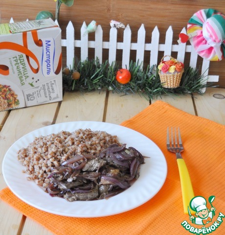 Подаём гречку с печенью горячими, посыпав зеленью.