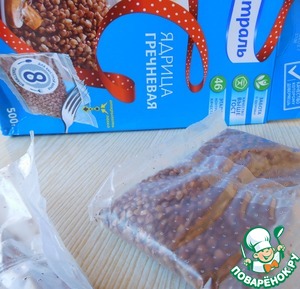 - Крупа гречневая (в пакетиках от Мистраль) — 2 пакет.