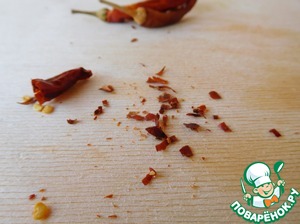 Перец режем мелко (у меня засушенный).