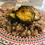 Готовую гречку выкладываем в тарелки, сверху кладем цуккини и поливаем заправкой.