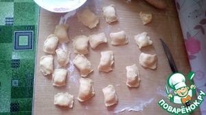 Раскатать тесто и нарезать его квадратиками 3х3 см.