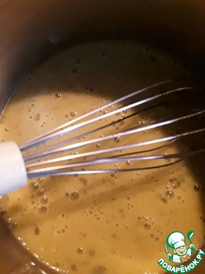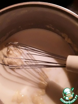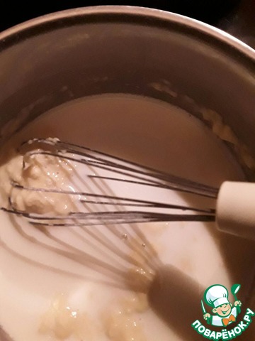 Добавляем к яйцам с мукой молоко и снова тщательно перемешиваем.