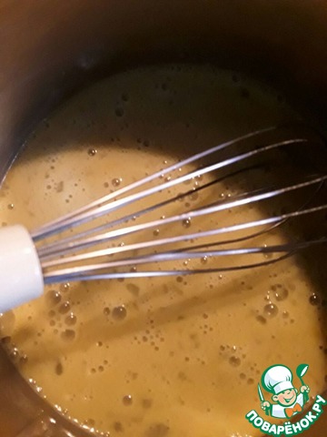 И в последнюю очередь добавляем минеральную воду. Я добавила газированную! Все перемешиваем и оставляем на 10 минут!