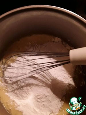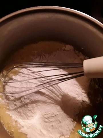 Добавляем к яйцам муку и хорошо перемешиваем.