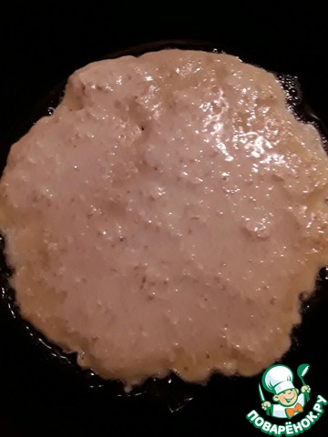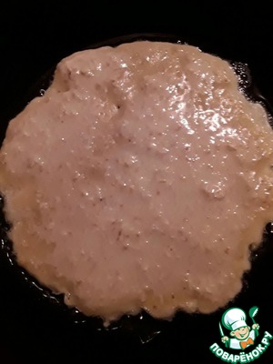 Наливаем блинчики на разогретую сковородку с небольшим количеством растительного масла. Я просто смазываю сковороду маслом.