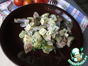 Добавляем порезанный укроп, сбрызгиваем оливковым маслом и подаем. Можно заправить салат сметаной.